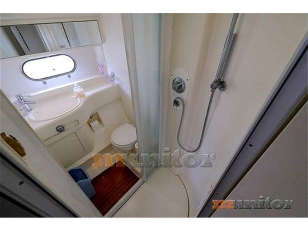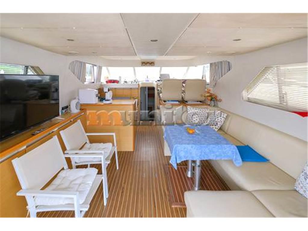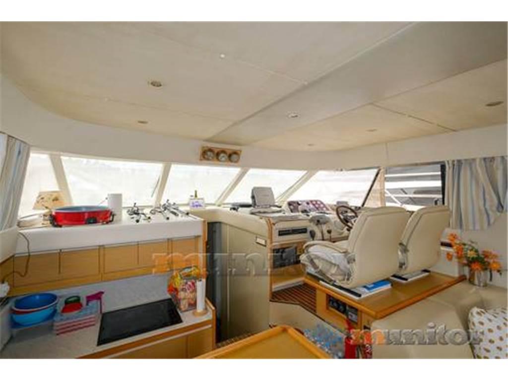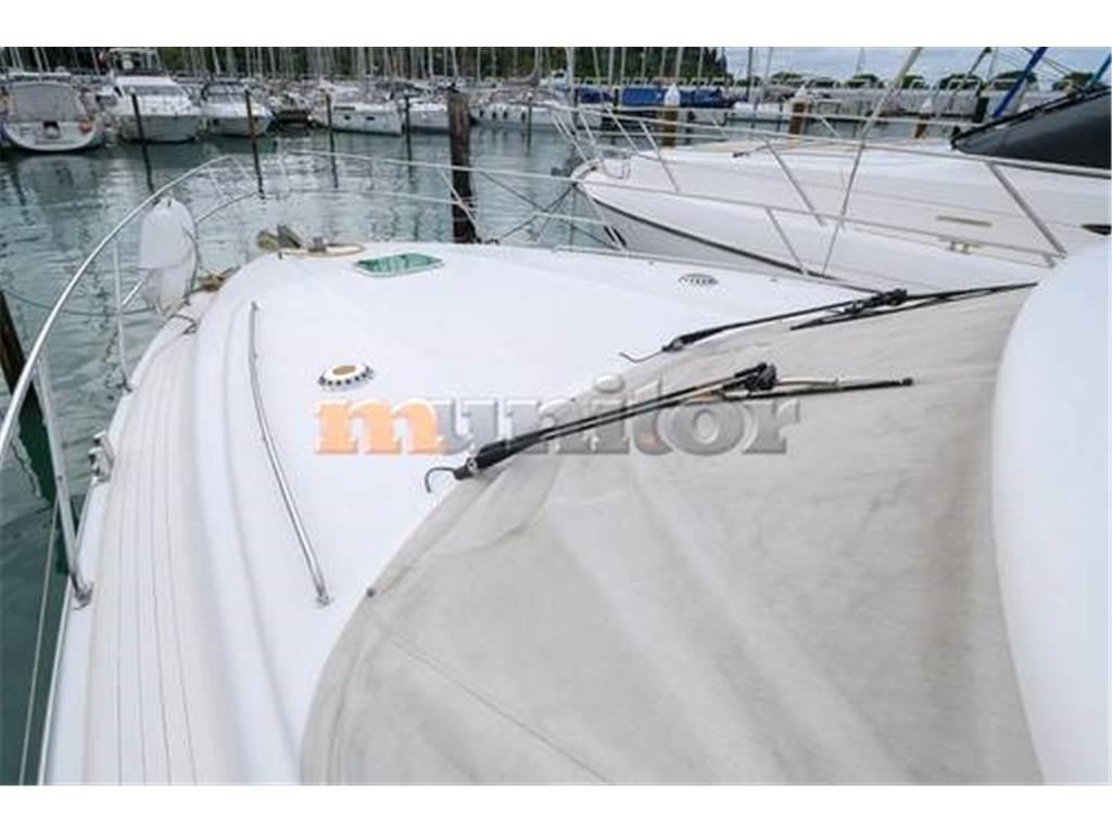Aria condizionata, Impianto audio, Pilota automatico, Piattaforma da bagno, Caricabatterie, Elica di prua, Doccia in pozzetto, Bussola, Cuscini di coperta, Ecoscandaglio, WC El., Salpa ancora El., Parabordi, Bimini FLYBRIDGE, Generatore, Plotter GPS, Serbatoio acque grigie, Riscaldamento, Impianto acqua calda, Passerella idraulica, TV LCD, Microonde, Divani in pelle, Elica di poppa, Scaletta bagno, Teak in pozzetto, VHF