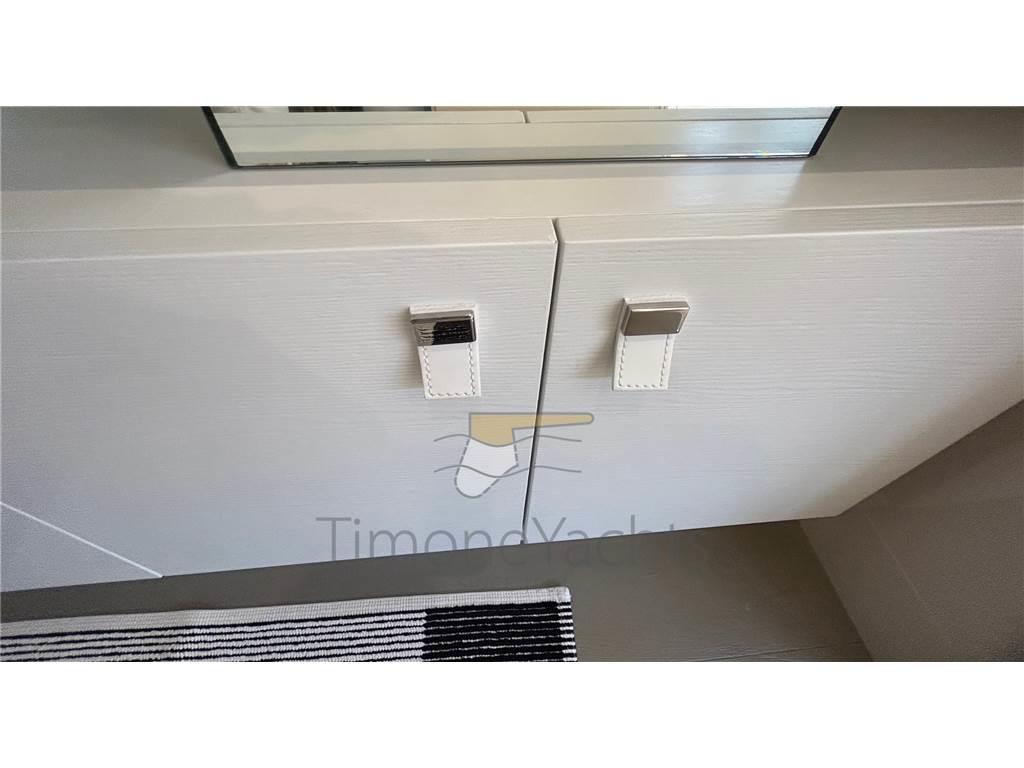Aria condizionata, BBQ/ Grill, Cassaforte, Clima reversibile, Controllo Domotica, Dimmer per Luci, Impianto acque nere, Pavimento interno in legno, Prese interne 12v, Prese interne 220v, Riscaldamento, Serbatoio Acque Nere, 6 WC marino elettrico (+ 2 crew).