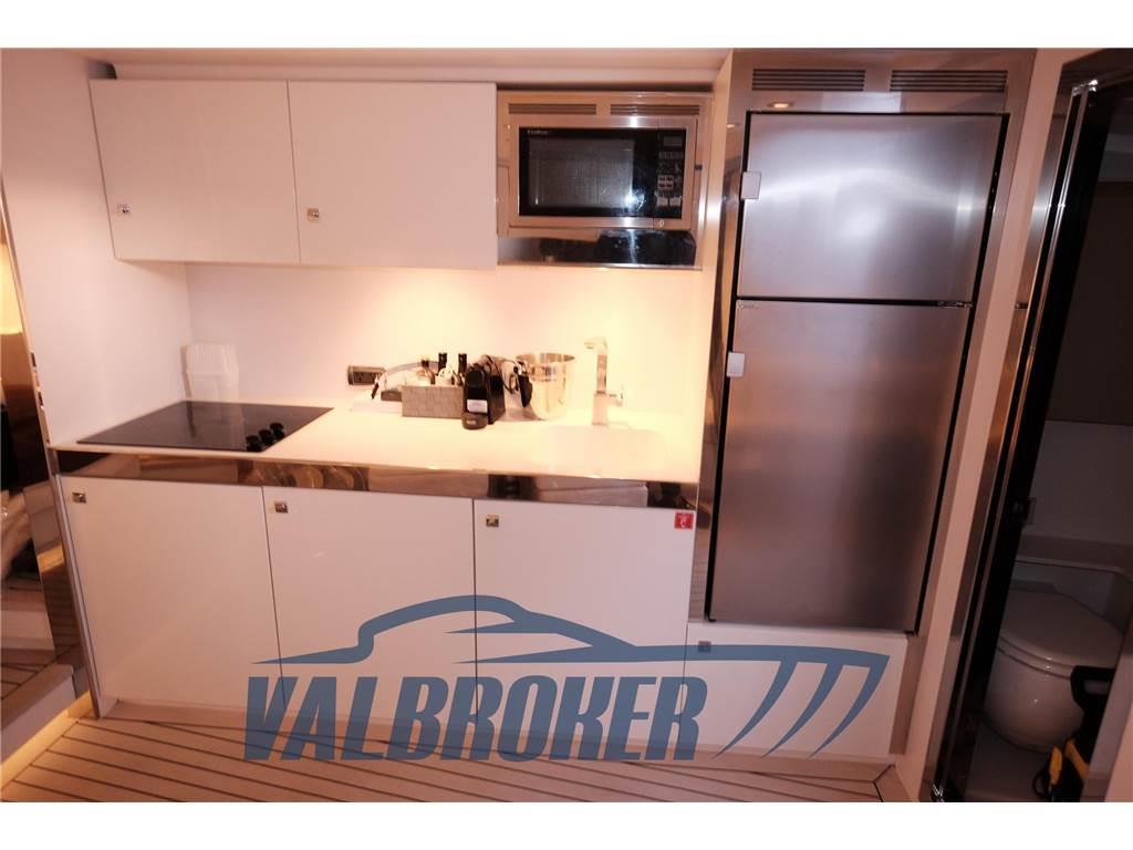 Aria condizionata, Bimini, Boiler, Cuscineria completa, Frigorifero interno (Vitfrigo con Freezer), Impianto acque nere, Microonde, Pavimento interno in legno (Flexiteak), Piastra in vetroceramica (3 fuochi), Stereo, TV (Samsung), WC marino elettrico