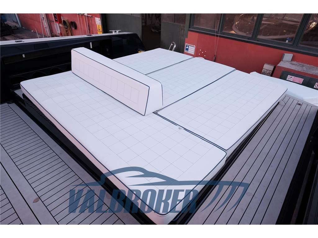 Angolo barra, Apertura Vano Motore Elettrica, Autoclave, 3 Batterie, Bitte Abbattibili, Camminamenti laterali in teak (Flexiteak), Caricabatterie, Comando motori elettronico, Computer di bordo, Ecoscandaglio, Elica di poppa - stern thruster, Elica di prua - bow thruster, GPS (Simrad), Luci di cortesia, Luci subacquee, Piattaforma (Flexiteak), Pilota automatico, Pozzetto Teak (Flexiteak), Salpa Ancore Elettrico, Stabilizzatori (Seakeeper)
