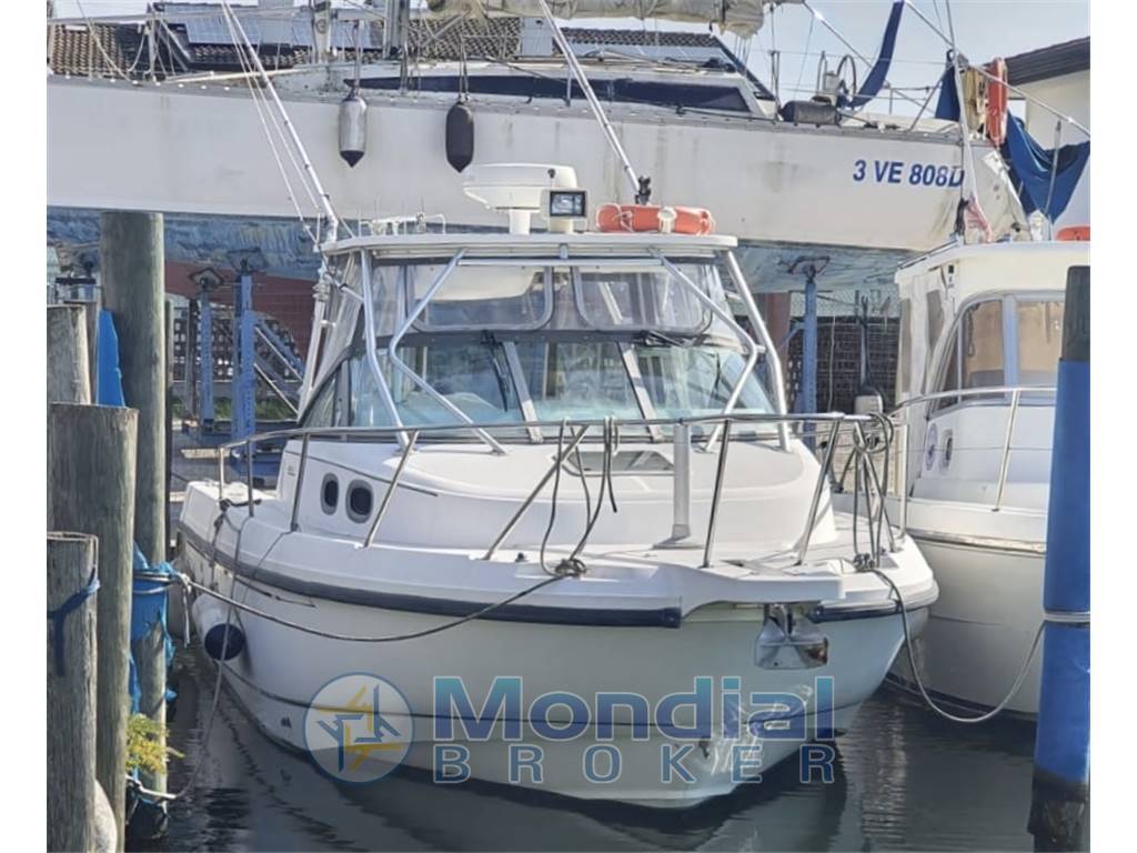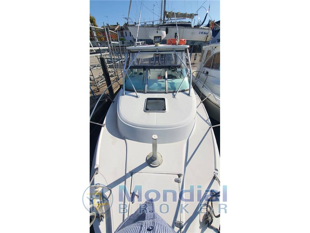 DIsposizione tipica dei conquest con 4 posti letto ampio pozzetto e ampia zona guida e passeggeri VAsca vivo e pescato in pozzetto buon prendisole hard top con chiusura invernale
