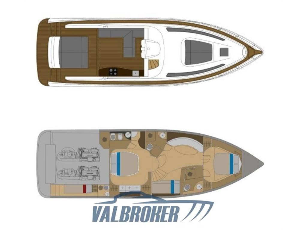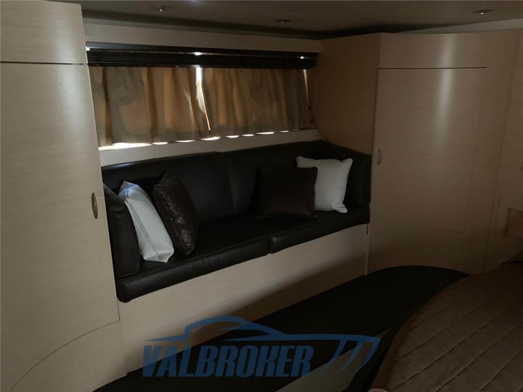 Hard Top elegante e sportivo. Model Year 2010. Motorizzato 2x Volvo Penta D 11 IPS 900. Tagliando motori e trasmissioni eseguito periodicamente da ufficiale Volvo Penta. Sottocoperta sono presenti tre cabine doppie: una matrimoniale a prua, una matrimoniale a centro barca ed una con due letti a castello. Full optional: generatore, Joystick, elica di prua, aria condizionata. Versione con plancetta di poppa in teak allungata. Applicazione antivegetativa e fornitura anodi sacrificali annuale.