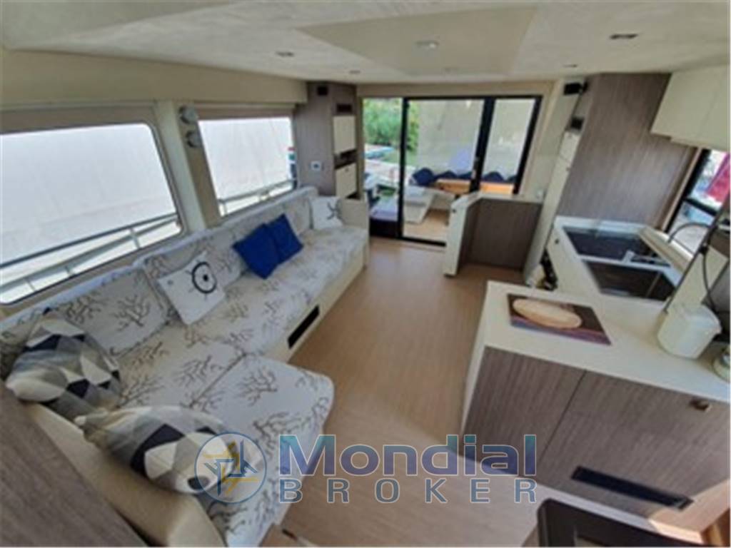3 CABINE 2 BAGNI: Cabina armatoriale al centro barca con annesso bagno con doccia separata, 2 cabine doppie 1 con letti in piano e una con letti singoli in linea, con bagno con accesso diretto nella dinette, Mobile attrezzato con cucina a fuochi a induzione, lavello doppio, Forno a microonde e frigorifero grande, comodo divano con tavolino trasformabile in letto a centro barca e un divano comodo a “L” in dinette.