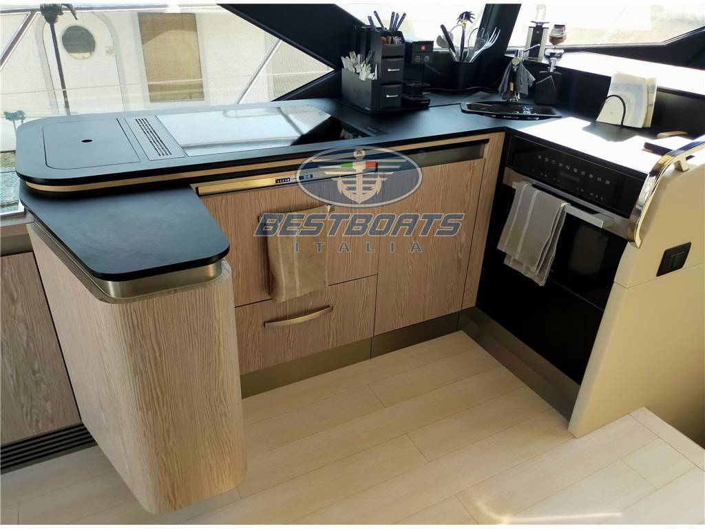 Main deck salone con cucina* a vista sulla murata di sinistra, consolle di comando sulla murata di dritta, ampio salotto a C con tavolo regolabile in altezza elettronicamente