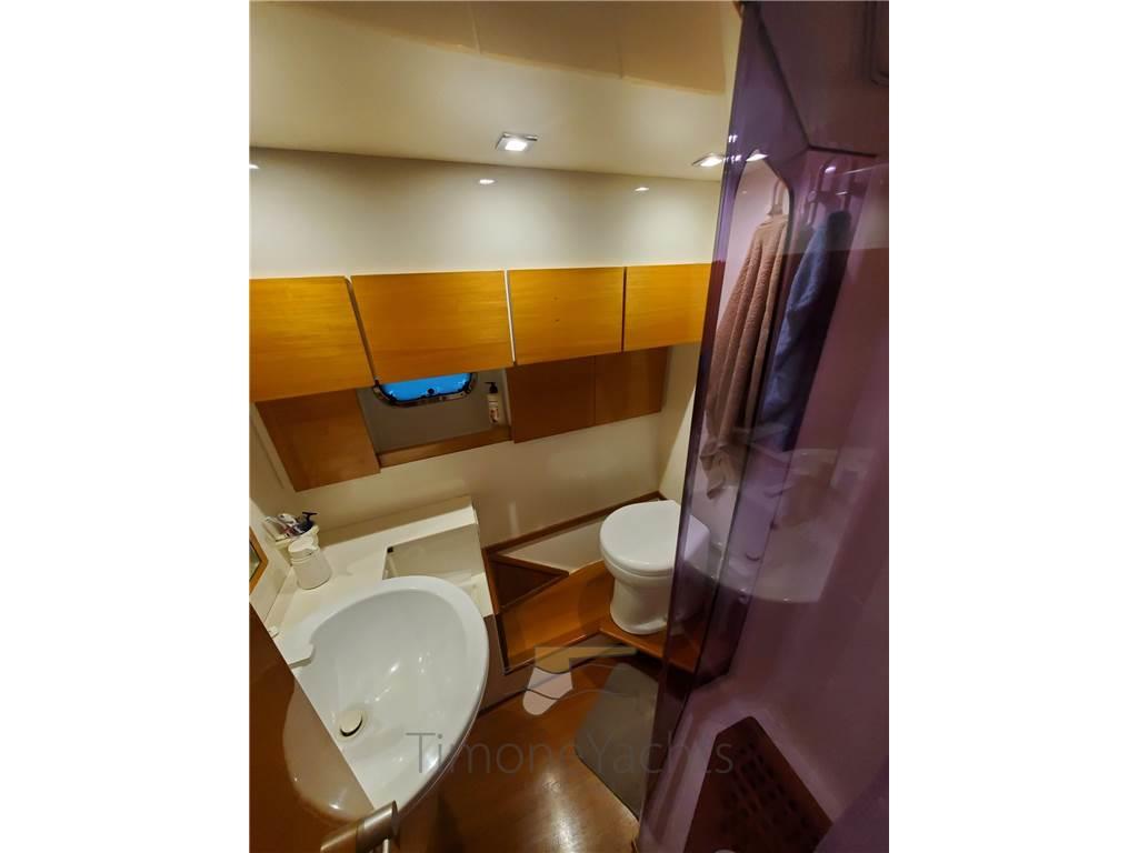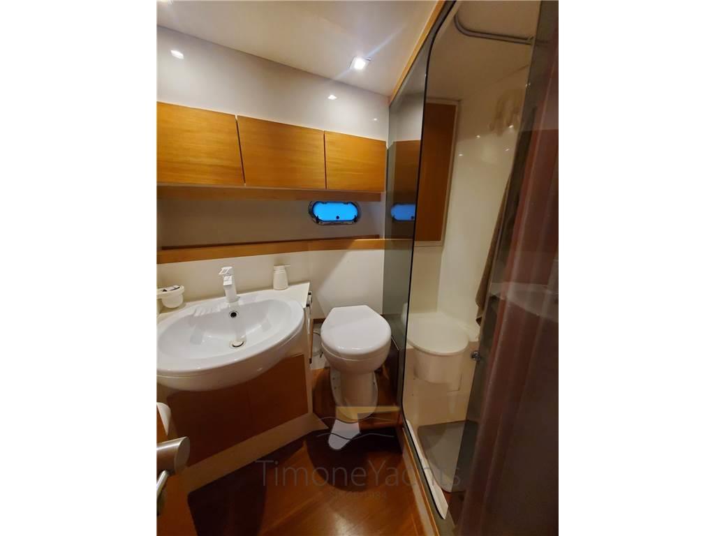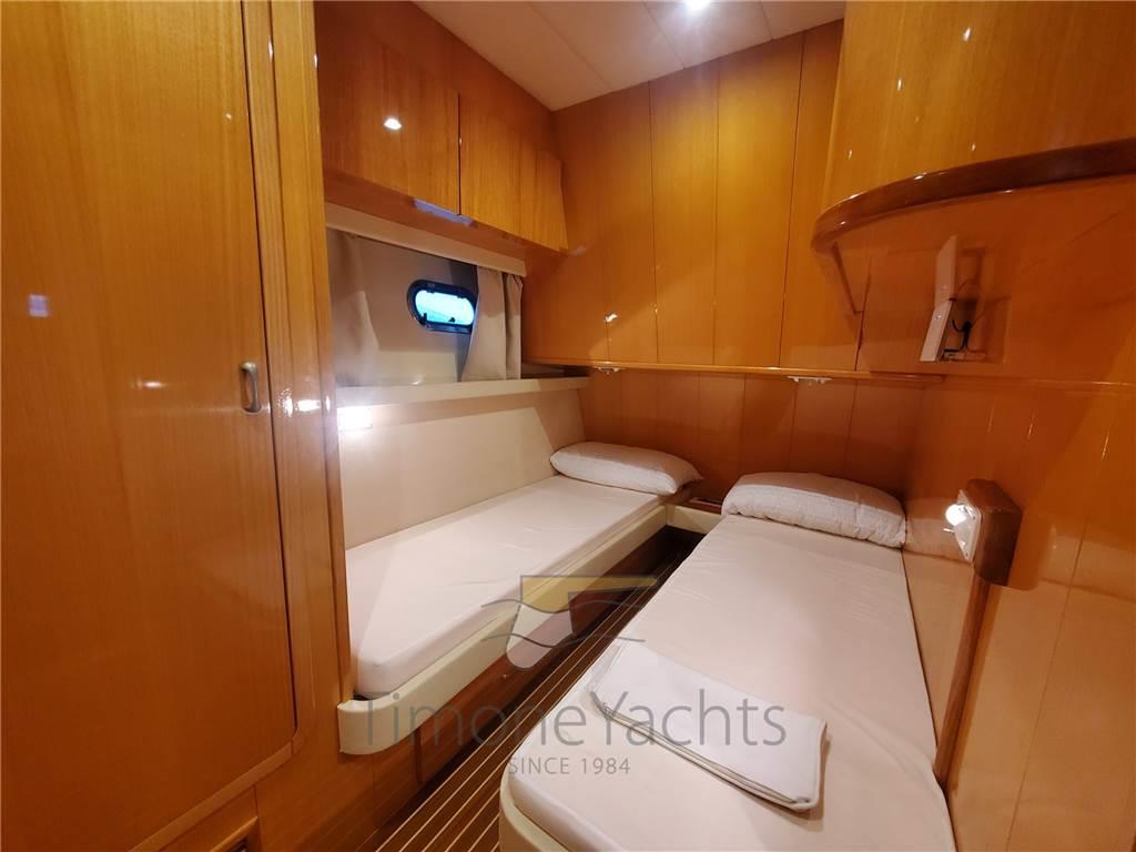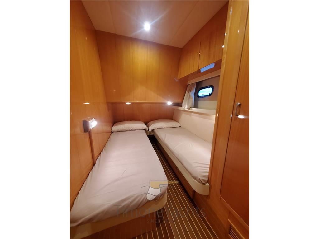 Layout composto da cabina armatoriale a prua, 2 cabine ospiti con letti gemelli in piano, 2 bagni con box doccia separato, cabina marinaio (storage a centro barca), dinette cucina separata con accesso indipendente dal pozzetto.