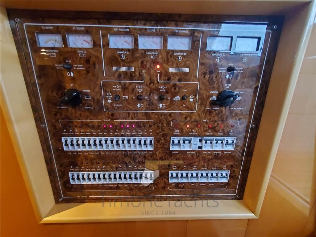 Elica di prua - bow thruster, Faro orientabile, GPS (Raymarine Hybridtouch 12), Hard top, Lavaggio catena, 4 Luci subacquee, Piattaforma (di poppa maggiorata), Pilota automatico, Ponte in teak, Pozzetto Teak, Radar, Tavolo pozzetto, Winch tonneggio di poppa