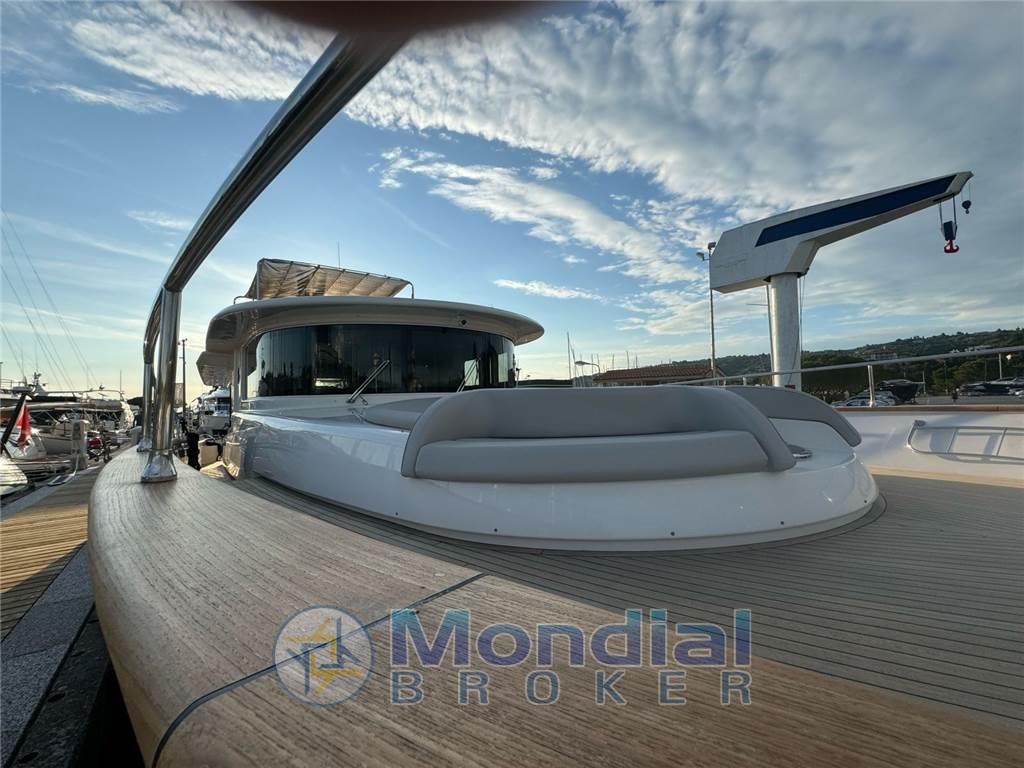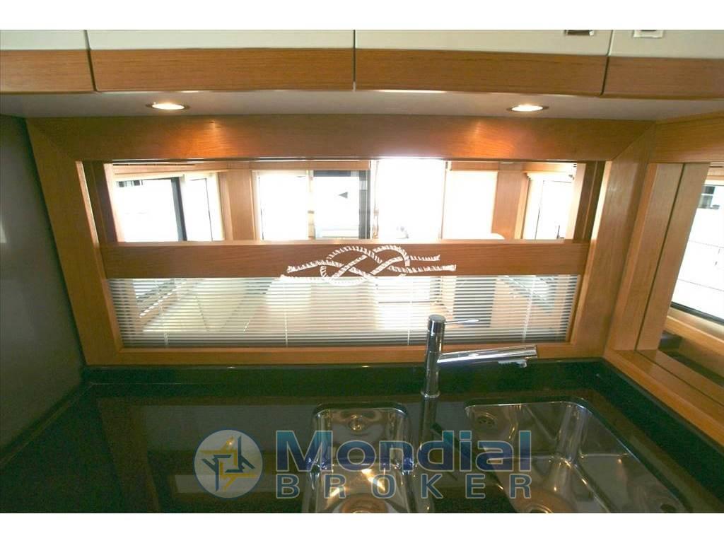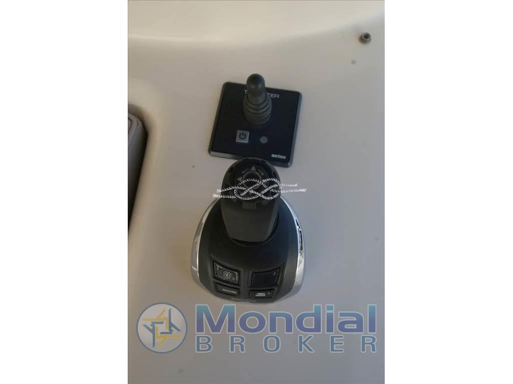 Pinne stabilizzatrici zerospeed CMC Marine - terza stazione di comando a poppa - joystick di manovra con interfaccia GPS - elica di prua Vetus - aria condizionata Condaria - gruppi elettrogeni Kohler 2 x 17 kW (230 e 770 ore moto) - dissalatore Idromar - tender con fuoribordo Suzuki 15 hp 4t - antenna SAT - frigo / freezer - frigo su flying bridge - lavastoviglie - forno Bosh - piano cottura Bosh 4 fuochi elettrico - lavatrice - TV LCD in salone a scomparsa - TV in cabina armatoriale, Vip e ospiti - Hi-Fi Bose - T-Top su flying bridge con tenda apribile manualmente - gruetta per tender sul flying bridge - luci immerse a poppa e laterali.