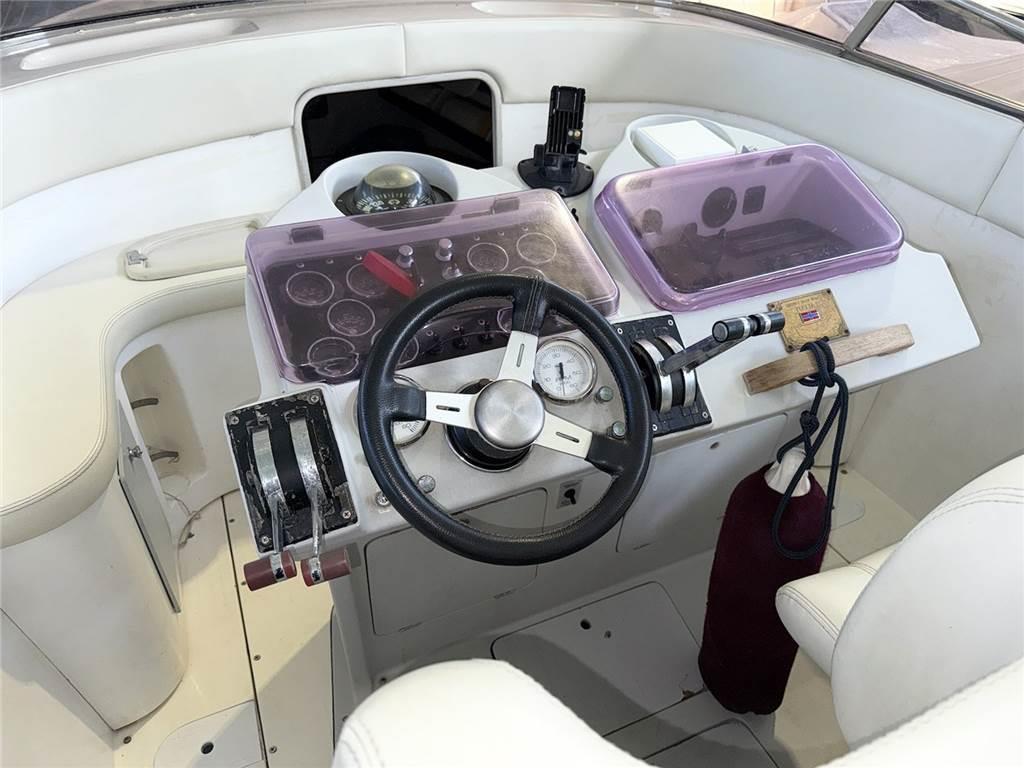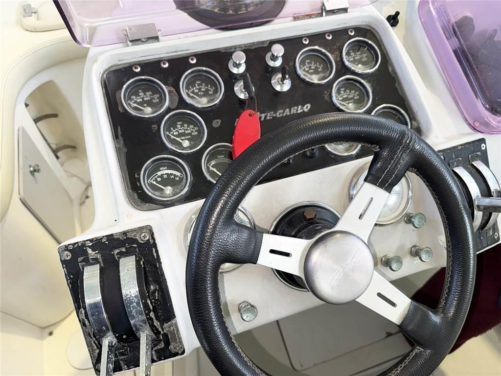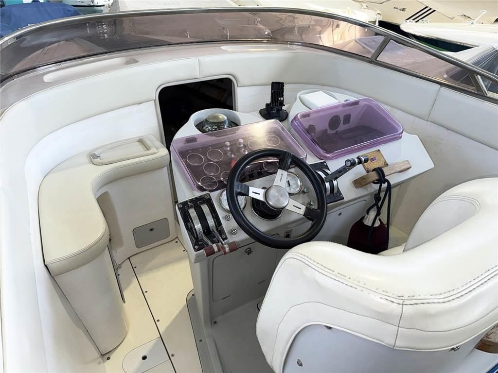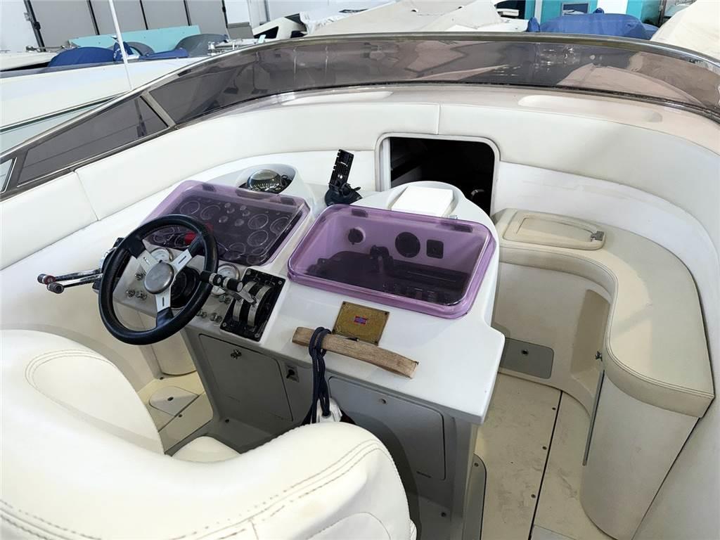 Volante timone; Manette gas; Strumenti motori (indicatore temperatura acqua, pressione olio, indicatore carburante, amperometro); Bussola; Gps Garmin; Radio Hi-Fi