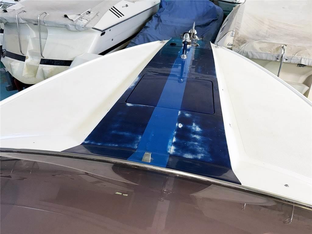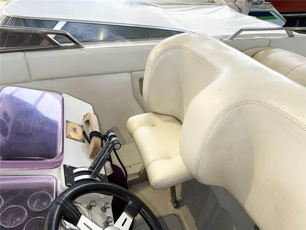 Il pozzetto del motoscafo è di tipo classico, con grande prendisole poppiero e doppio sedile di pilotaggio centrale per pilota e navigatore. A prua una cabina con due cuccette, il tutto rifinito con una grandissima attenzione ai particolari.