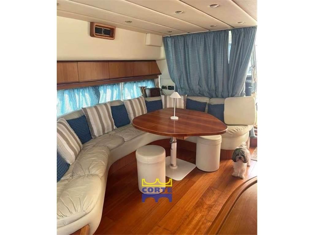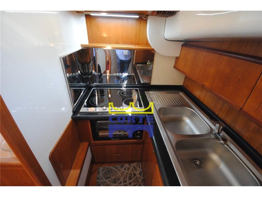 Altoparlanti, BBQ/ Grill (fly), Bimini (fly), Boiler (elettrico scambiatore), Cappottina, Clima reversibile, Congelatore, Cucina, Cuscineria completa, Digitale Terrestre, Forno, Frigorifero esterno (fly), Frigorifero interno, Impianto TV, Inverter (recente), Lavatrice, Pavimento interno in legno, Piastra in vetroceramica, Prese interne 12v, Prese interne 220v, Stereo, Telo copriconsolle, Telo coprisedile, TV, WC marino elettrico, prese a mare e tenute assi recenti