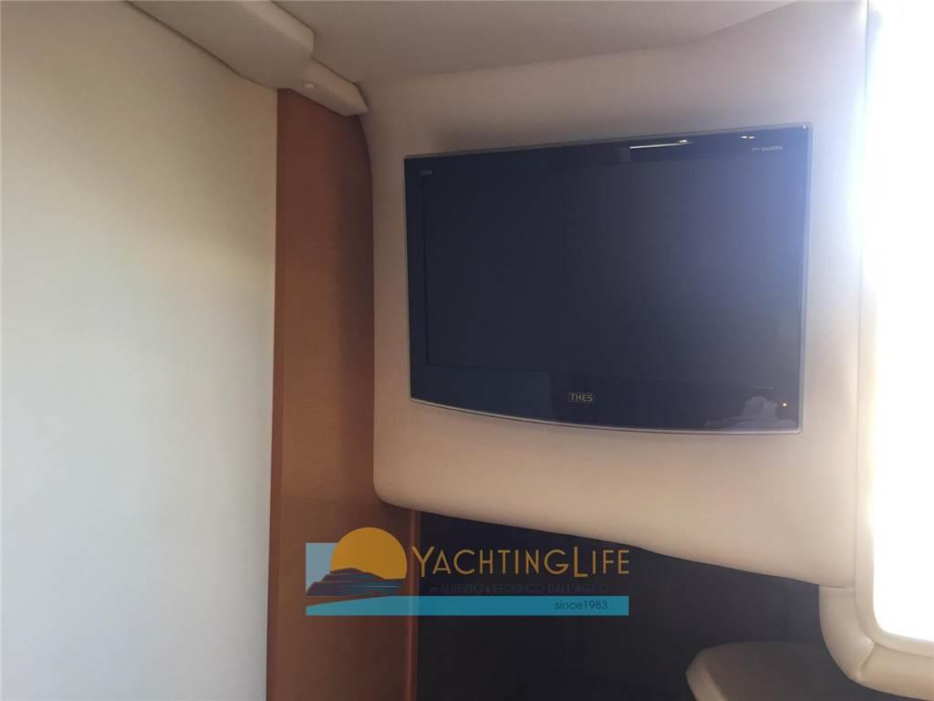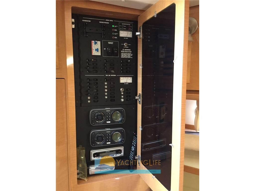 Altoparlanti, Aspirapolvere centralizzato, Boiler, Cappottina, Clima reversibile, Copripozzetto, Cuscineria completa, DVD, Frigorifero esterno, Frigorifero interno, Impianto acque nere, Impianto TV, Microonde, Pavimento interno in legno, Piastra in vetroceramica, Prese interne 12v, Prese interne 220v, Serbatoio Acque Nere, 2 Stereo, TV, WC marino elettrico