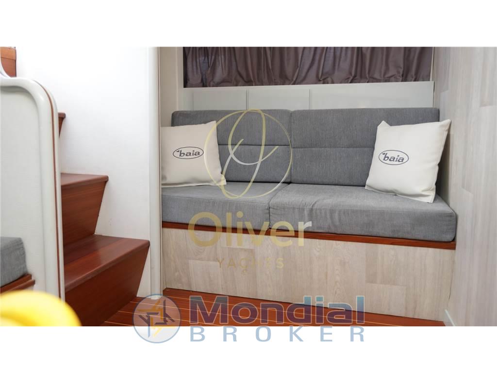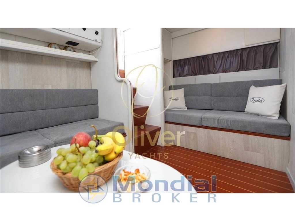 L’interno del Baia 50 Force One è stato riprogettato nel 2019 con un’attenta revisione degli spazi per garantire il massimo comfort durante la permanenza a bordo. Gli ambienti si distinguono per eleganza, funzionalità e cura dei dettagli, con finiture moderne e materiali di qualità, mantenendo lo spirito sportivo dell’imbarcazione.