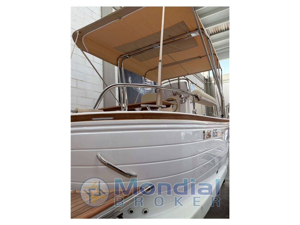 Finiture in Legno: Il ponte, il trincarino (il bordo superiore della fiancata) e la plancetta di poppa sono solitamente rivestiti in pregiato teak massello, che conferisce alla barca il suo aspetto classico ed elegante.