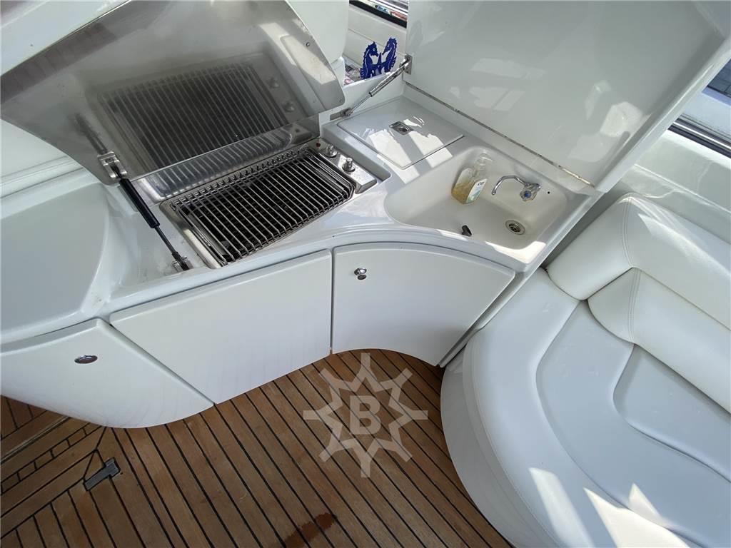 Altoparlanti, Aria condizionata, BBQ/ Grill (in pozzetto), Boiler, Clima reversibile, Copripozzetto, Cucina, Cuscineria completa, Cuscineria di poppa, Cuscineria di prua, Cuscineria Pozzetto, Frigorifero esterno, Frigorifero interno, ICE Maker, Impianto acque nere, Impianto TV, Microonde, Pavimento interno in legno, Piastra in vetroceramica, Prese interne 12v, Prese interne 220v, Stereo, TV, 2 WC marino elettrico