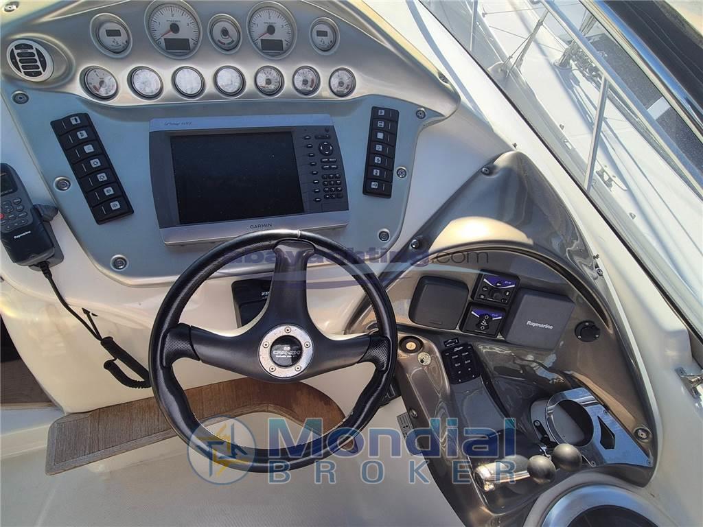 Angolo barra, Bussola (Ritchie), Comando motori elettronico, Contametri catena, Display, Ecoscandaglio (Raymarine), Plotter con antenna GPS (Garmin GpsMap 4010), Radio VHF (Raymarine Ray240E).