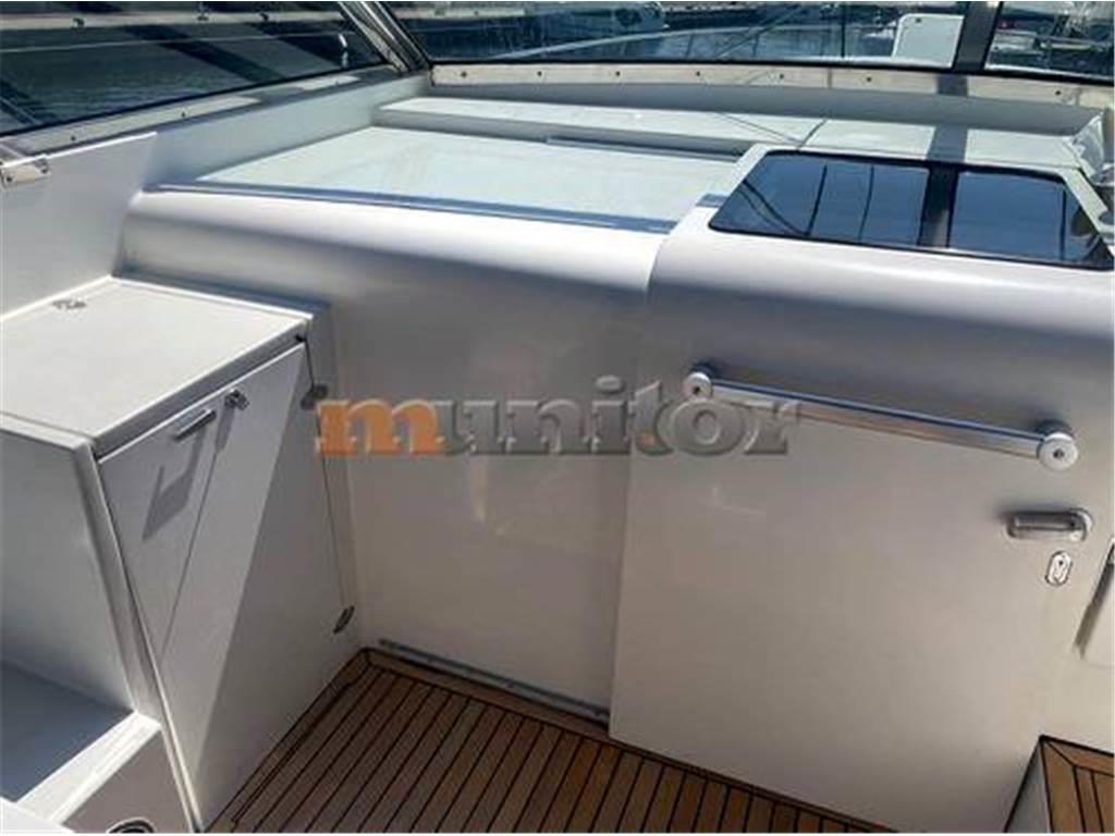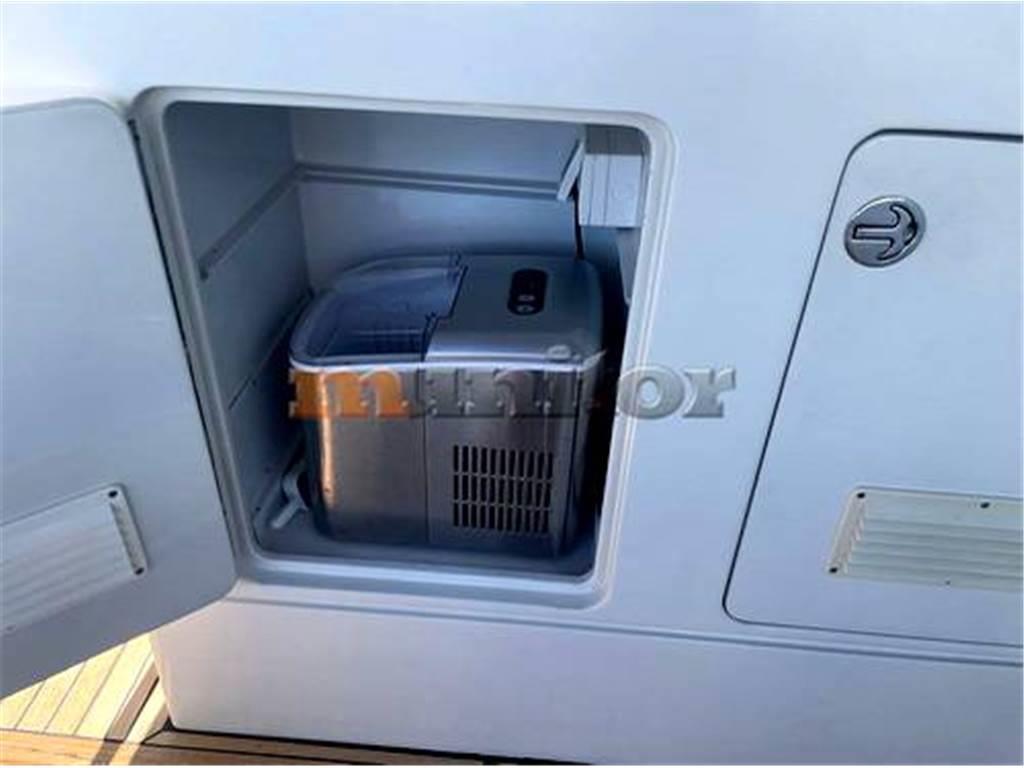 VHF, ecoscandaglio, aria condizionata, riscaldamento, doccia in pozzetto, verricello elettrico, impianto acqua calda, plotter GPS, bimini top, caricabatterie, cuscini di coperta, passerella idraulica, elica di prua, TV LCD, antenna satellitare, impianto audio, parabordi, forno a microonde, piattaforma da bagno, scaletta da bagno, divani in pelle, generatore, batteria motore, batteria di servizio, teak in pozzetto, teak a poppa