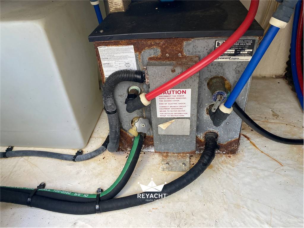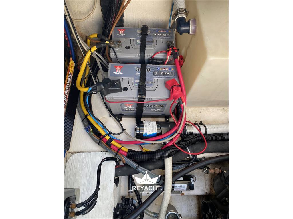 Équipements : climatisation, système stéréo, TV, GPS/traceur, sondeur, VHF, indicateurs de flaps et de barre, compas, propulseur d’étrave.