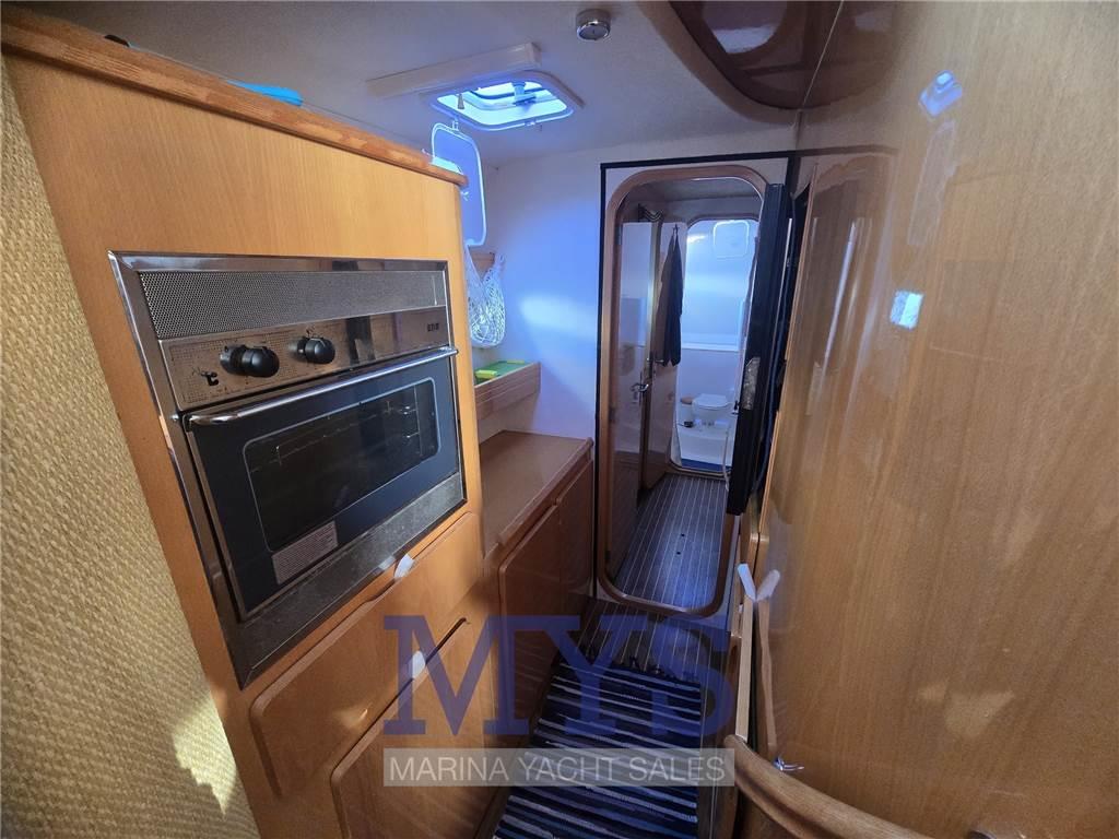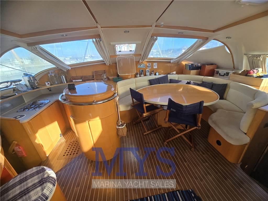La distribuzione interna è particolarmente generosa: fino a 10 ospiti possono trovare alloggio in 4 cabine matrimoniali con 4 bagni indipendenti. Gli spazi comuni, sia interni che sul ponte, sono ampi, ben rifiniti e progettati per garantire comfort anche in navigazioni prolungate.