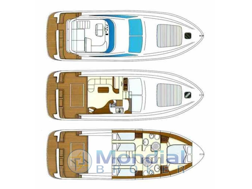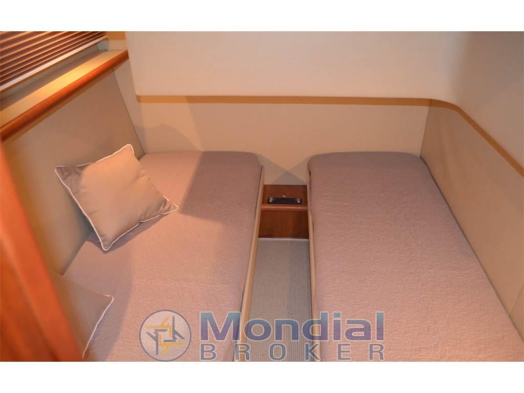 3 Cabine, 2 Bagni. Ampia armatoriale a prua con bagno interno con box doccia e bidet: due ospiti gemelle con letti in piano; secondo bagno in corridoio completo di box doccia e bidet.