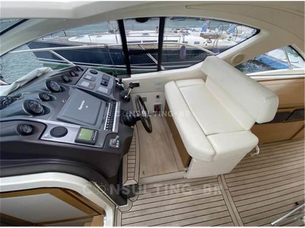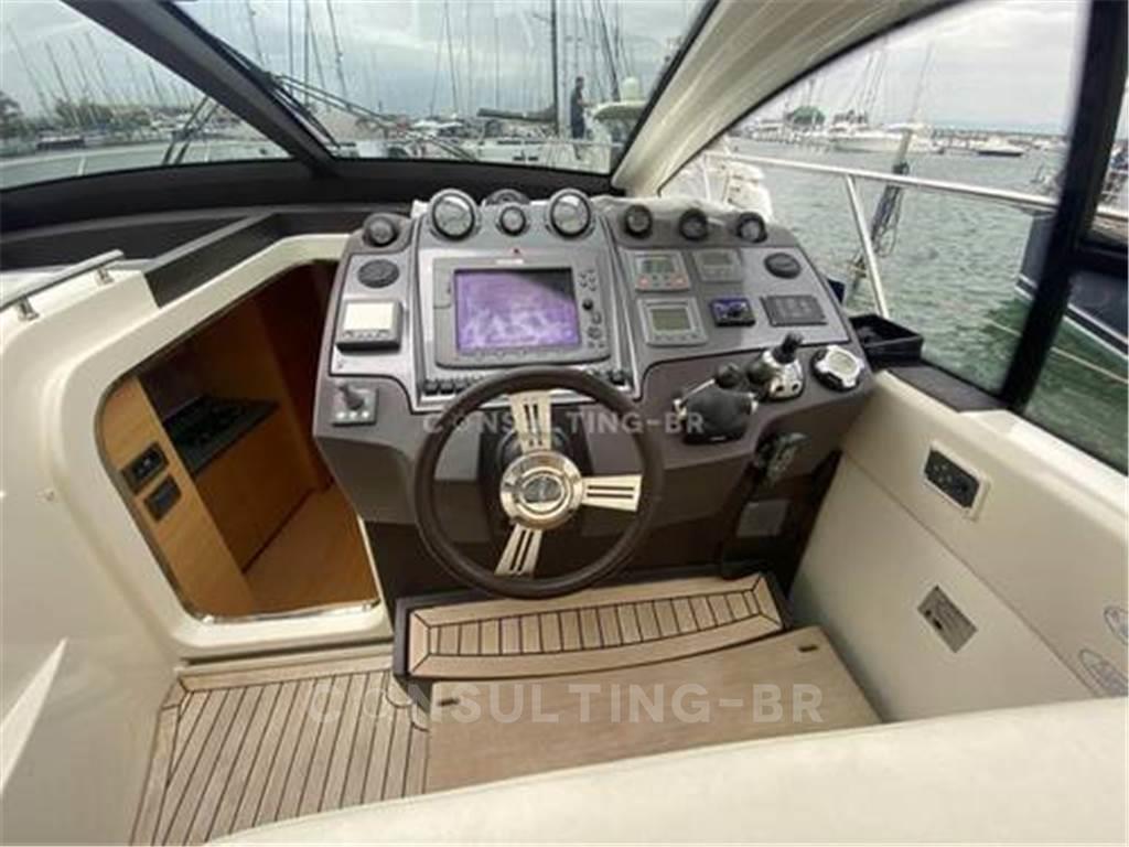 Dotazioni (estratto) Navigazione: pilota automatico, radar, GPS, comando joystick, VHF, elica di prua Comfort: climatizzatore (reversibile), generatore, barbecue/grill, impianto TV con sollevatore, impianto audio, forno a microonde, frigoriferi/congelatori, piano cottura in vetroceramica Ponte e area esterna: hardtop, passerella idraulica, teak nel pozzetto, grandi prendisole, tavolo nel pozzetto, doccia esterna Sicurezza e manovrabilità: verricello elettrico, flap idraulici, proiettore, piattaforma da bagno con scaletta Extra: verniciatura speciale, tappezzeria completa, telo di copertura Il vostro vantaggio Uno yacht perfettamente curato con ottime dotazioni, pronto per essere utilizzato nella prossima stagione.