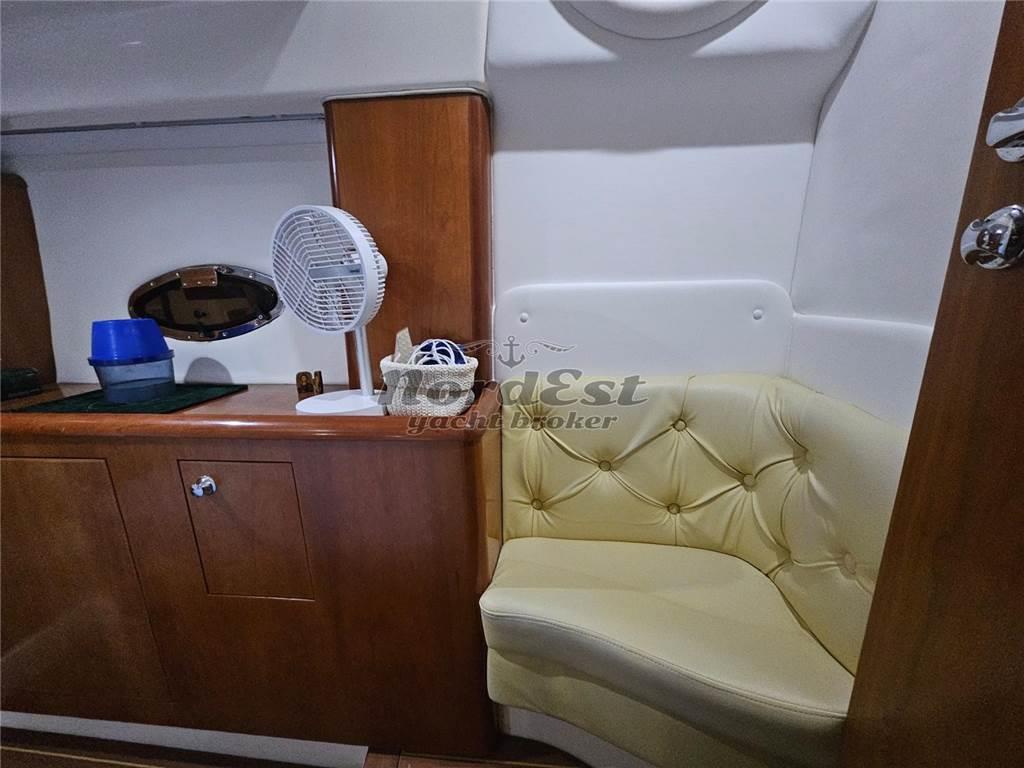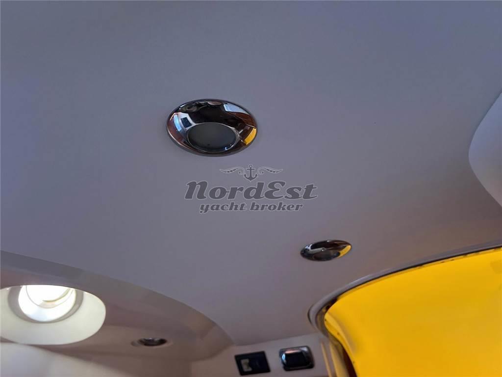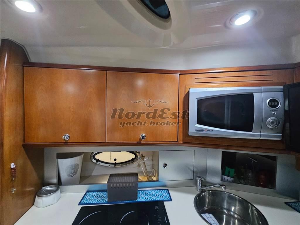 Cucina con piastra in vetroceramica, frigo e forno a microonde, Wc separato con doccia, Boiler, Capottina rifatta nel 2025, lavandino nel pozzetto, Cuscinaria di poppa, Cuscineria di prua, Pavimento interno in legno, Prese interne 12v e 220v, Stereo, TV, WC marino elettrico, Autoclave, Bussola, Caricabatterie, Contametri catena, Doccia esterna, Ecoscandaglio, Elica di prua, Flap elettrici, Luci di cortesia, Passerella Idraulica a scomparsa, Pilota automatico, Plotter con antenna GPS, Pompa di sentina automatica, Presa 220V banchina, Radio VHF, Rollbar, Salpa Ancore Elettrico, Scaletta da bagno, Tavolo pozzetto.