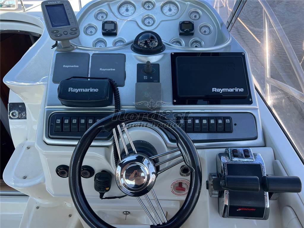 Omologato natante per 10 persone, 4 posti letto, sostituita la tappezzeria interna nel 2023, nel 2025 sostituito il teak nell’ingresso del pozzetto, ottime condizioni generali. Motori benzina Mercruiser