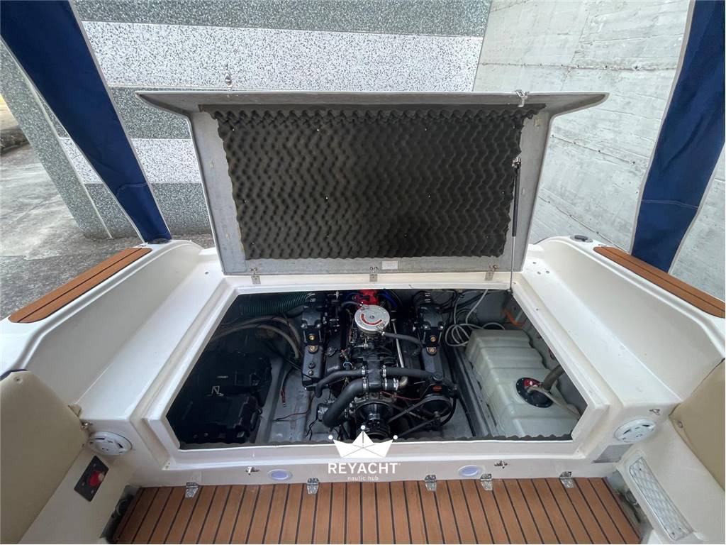 La motorizzazione è affidata a un Mercruiser MCM 5.0L benzina da 210 HP, con trasmissione entrofuoribordo e piede poppiero, che assicura prestazioni brillanti e una navigazione dinamica.