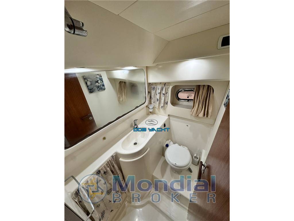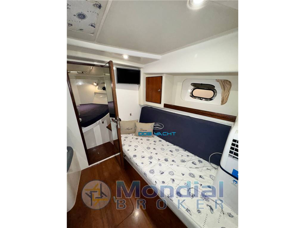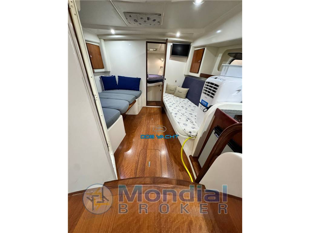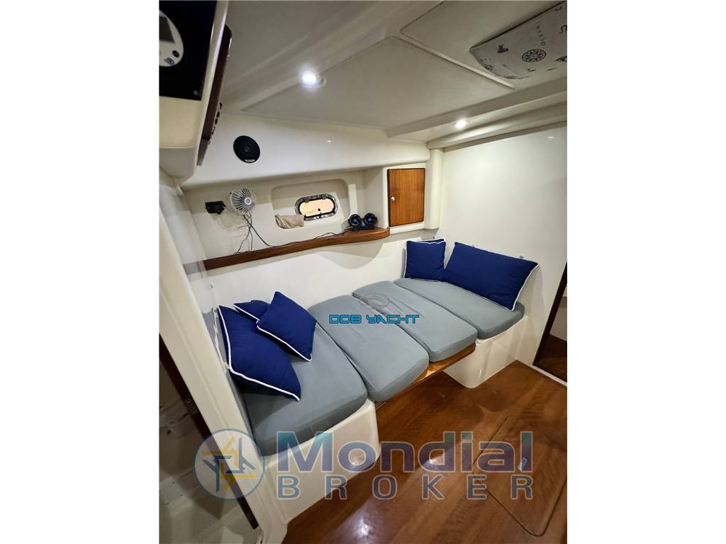 1 CABINA, 1 BAGNO: cabina armatoriale a prua separata, dinette trasformabile a SX, cucina con mobile con piano di appoggio a dritta lavabo, n* 2 fuochi ad induzione CANDY, frigo ISOTHERM vari cassetti e stipetti, WC separato; ampio pozzetto con divani corredati di tappezzerie e tavolo con piede regolabile elettrico trasformabile in prendisole, plancia comando con seduta pilota e co pilota, ampio prendisole di prua.