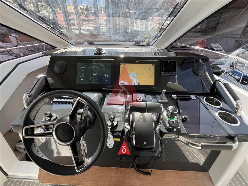 Allarme motore, Angolo barra, Apertura Vano Motore Elettrica (Gavone Poppa), Auto Dynamic Trim Interceptor (Zipwake 450), Autoclave, Batterie, Bussola, Camminamenti laterali in teak (Teak Sintetico), Caricabatterie, Cavo corrente di banchina, Comando motori elettronico, Computer di bordo, Contametri catena, Doccia esterna, Ecoscandaglio, Elica di prua - bow thruster, GPS, Joystick (Joystick di Manovra ), Lavandino nel Pozzetto, Log, Luci di cortesia, Luci di navigazione, Monitor batteria, Monitor dei consumi, 4 Piattaforma (Spiaggette di Poppa + Aperture Murate Laterali), Pilota automatico, Plotter con antenna GPS, Pompa di sentina automatica, Pompa di sentina elettrica, Pompa di sentina manuale, Pozzetto Teak (Teak Sintetico), Presa 220V banchina, Presa acqua banchina, Quadro comandi, Radio VHF, Salpa Ancore Elettrico, 2 Scaletta da bagno (Scaletta estraibile su spiaggetta di poppa e scaletta grande amovibile), 2 Sedile Copilota, Sistema di posizionamento dinamico, Tavolo pozzetto (In Teak), Tromba, T-Top