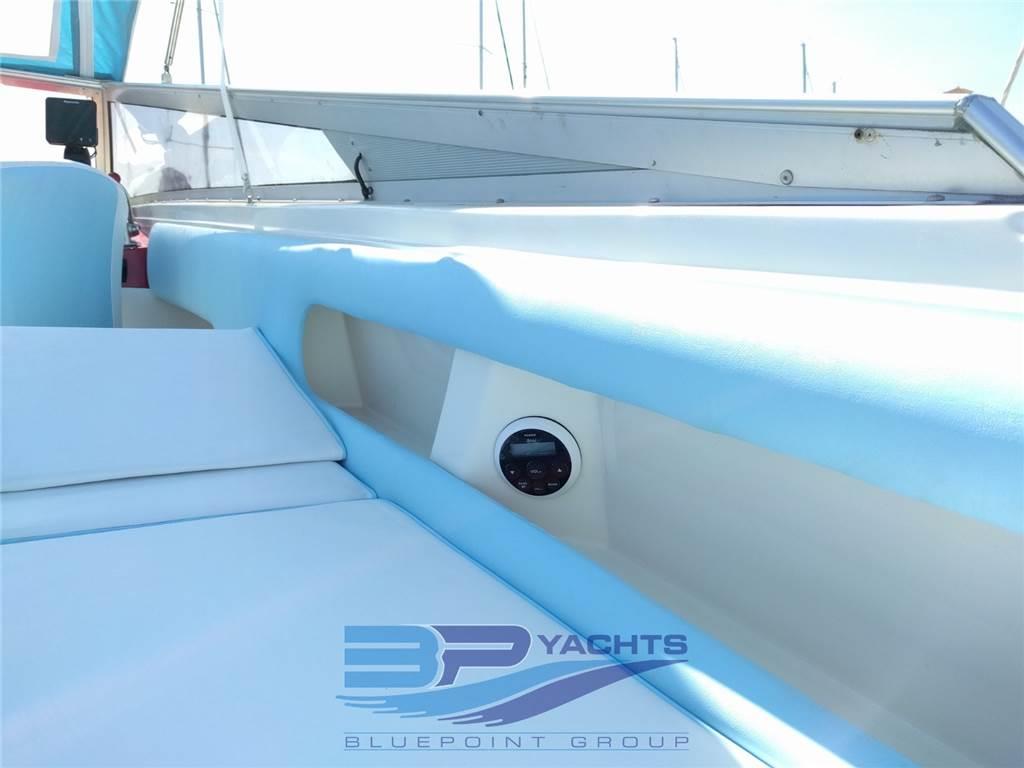 Refitting comprensivo di: Verniciatura (Scafo, quadro comandi e porta ingresso), Cuscinerie, Tendalino, Strumentazione, Controllo motori e piedi poppieri, Carena portata a zero e trattamento osmosi.