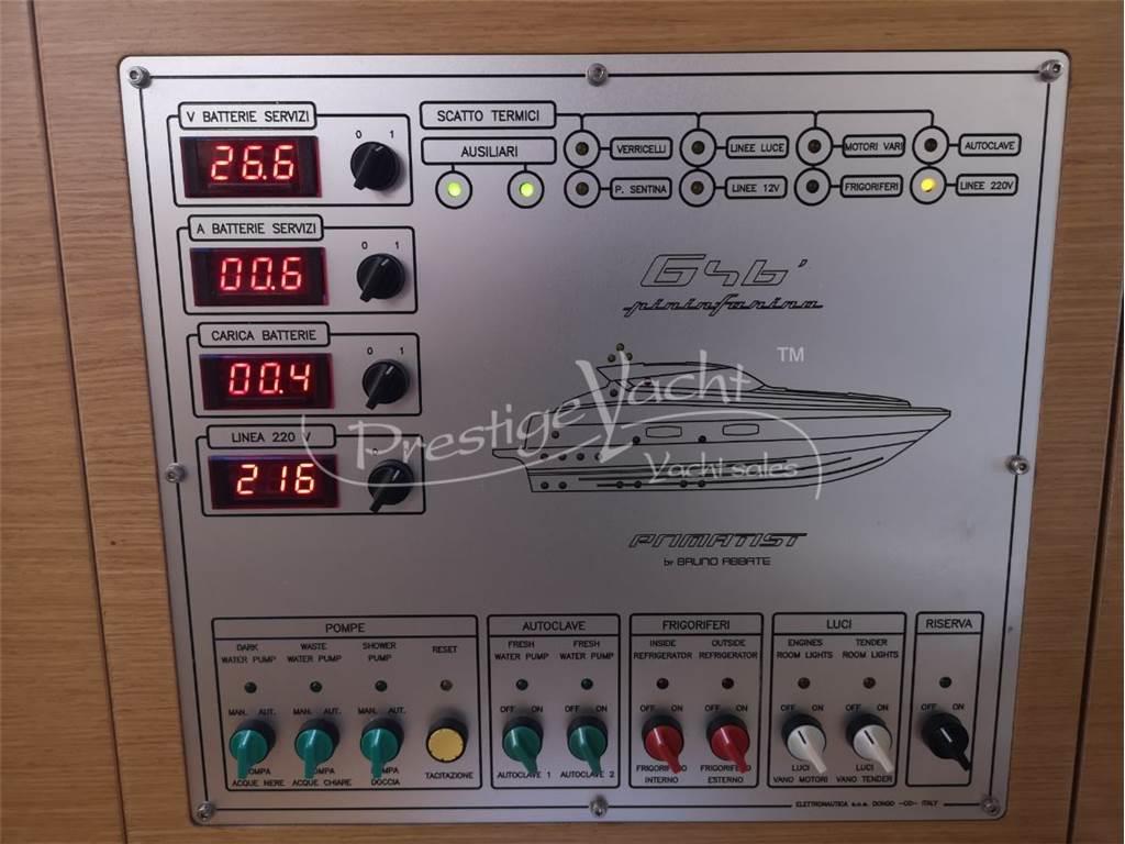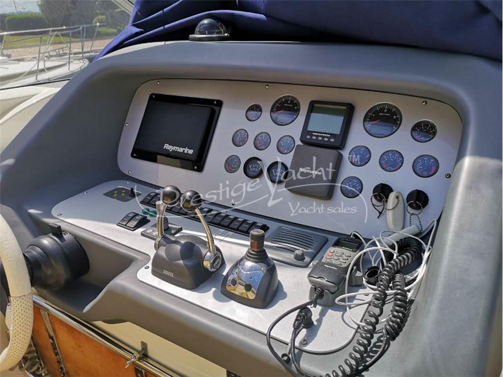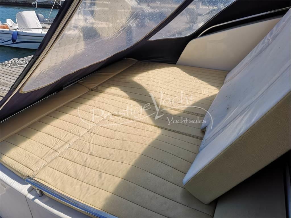 Allarme motore, Autoclave, Camminamenti laterali in teak, Caricabatterie, Doccia esterna, Elica di prua, Faro orientabile, Flap idraulici, Hard Top, Impianto antincendio, Indicatori flaps, Luci subacquee, Passerella (idraulica a scomparsa), Piattaforma, 3 Pompa di sentina automatica, 1 Pompa di sentina manuale, Porta di ingresso, Pozzetto in teak, Presa 220V banchina, Rollbar, Salpa ancora elettrico, Tavolo in pozzetto, Winch tonneggio di prua Cucina, Frigorifero esterno, Frigorifero interno, Piastra in vetroceramica Boiler, Clima reversibile, Impianto acque nere, Prese interne 12V, Prese interne 220V, 2 Wc marino elettrico Altoparlanti, Digitale terrestre, Impianto TV, Stereo, TV Angolo barra, Bussola, Comando motori elettronico, Ecoscandaglio, GPS, Pilota automatico, Plotter Copripozzetto, Cuscineria completa, Cuscineria di poppa, Cuscineria di prua, Cuscineria pozzetto, Prendisole, Telo copri consolle, Tendalino (poppa)