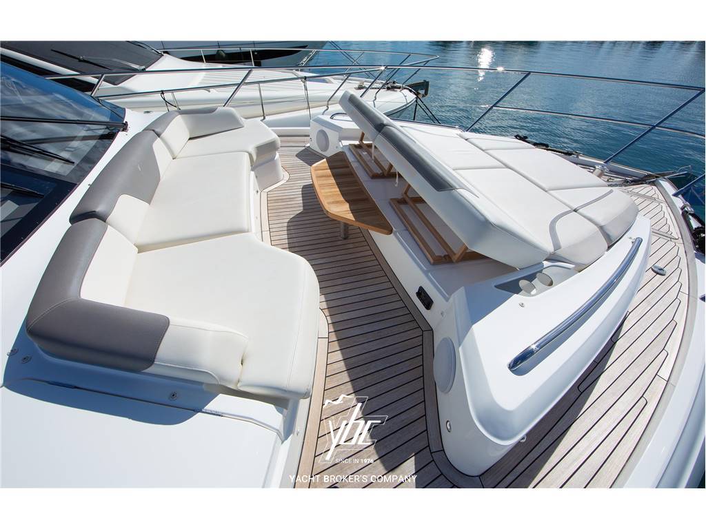 A dritta, un tavolo pranzo con divanetto completa la zona pranzo, mentre più avanti un grande divano a C guarda verso un mobile con TV da 50”. La postazione di guida, con il caratteristico finestrino elettrico Princess sia a dritta che a babordo assicura un’ottima ventilazione e un controllo totale dell’imbarcazione.