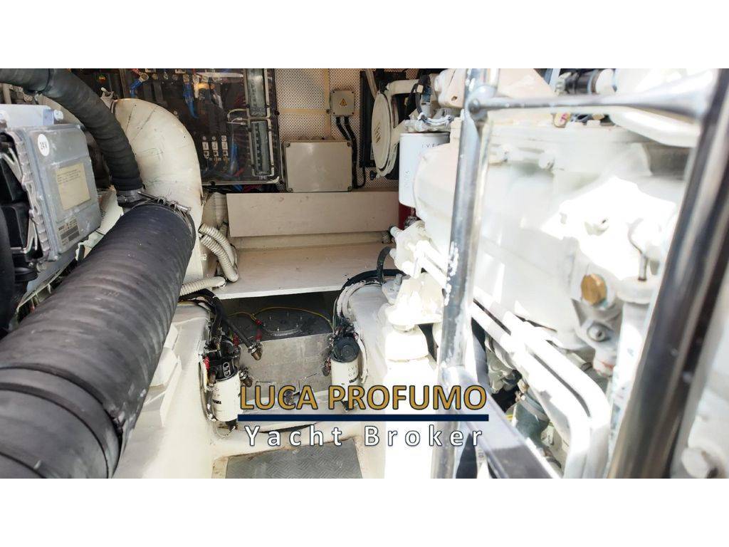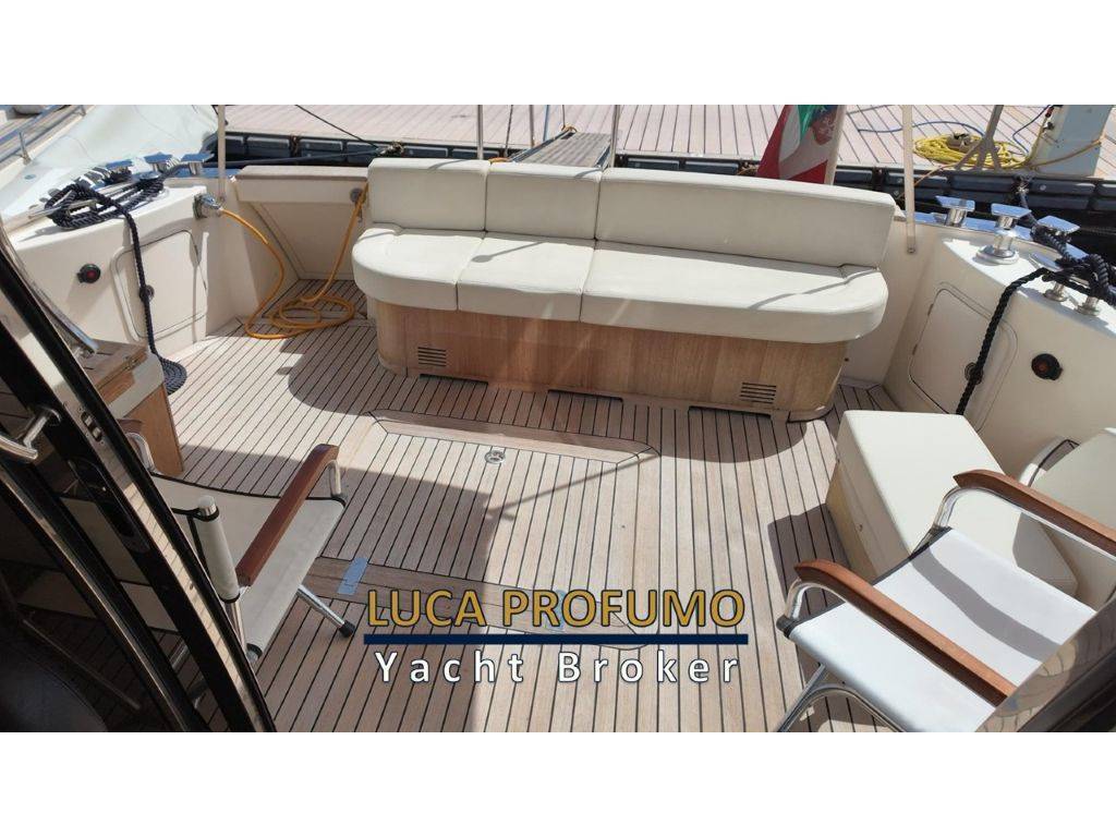 Elica di prua, Elica di Poppa, 2 tonneggi a poppa, Passerella Idraulica, Generatore 9kw, Climatizzatore, porta laterale, pozzetto in teak, camminamenti laterali in teak, tendalino pozzetto, cuscineria pozzetto, cuscino prendisole a prua