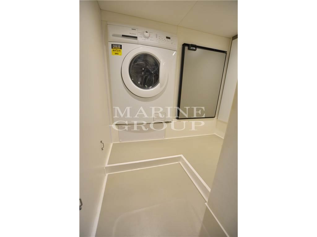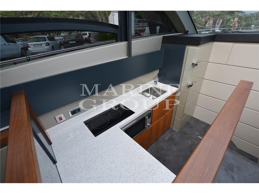 Grande salone con porte apribili e finestrature laterali a scomparsa elettricamente - Cucina equipaggiata con frigo a colonna e piastra vetroceramica - Enorme cabina armatoriale a prua con bagno ensuite - Cabina ospiti con letti doppi convertibili in matrimoniale - Cabina ospiti con letti doppi singoli - Bagno ospiti
