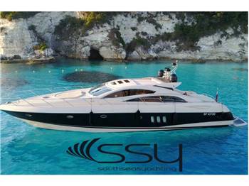 Lokù Kadè è un Sunseeker Predator 72 versione 4 cabine, con scafo nero, tuga beige, pozzetto in teak e interni in noce satinato, com...