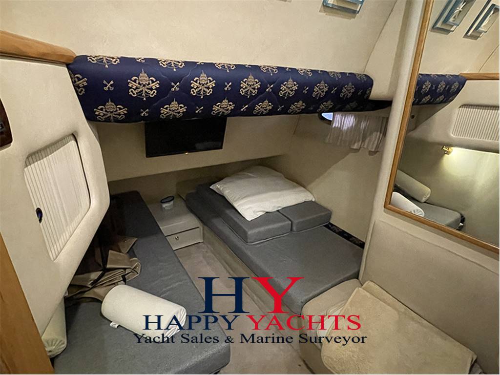 AMPIA DINETTE CON CUCINA OPEN SPACE - ZONA NOTTE COMPOSTA DA UNA CABINA OSPITI CON DUE LETTI IN PIANO UNA SECONDA CABINA OSPITI CON LETTI A CASTELLO, BAGNO OSPITI CON CABINA DOCCIA E CABINA ARMATORIALE DI PRUA CON LETTO MATRIMONIALE E BAGNO èPRIVATO CON CABINA DOCCIA.