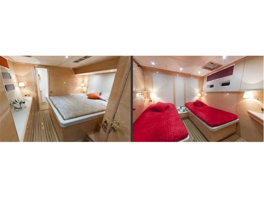 LO YACHT DISPONE DI ARMATORIALE, VIP E DUE DOPPIE, TUTTE LE CABINE HANNO IL BAGNO PRIVATO, ZONA EQUIPAGGIO SEPARATA. FULL-OPTIONAL