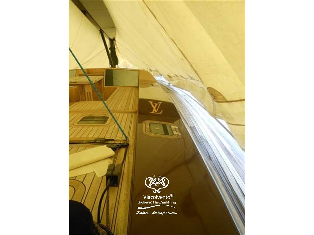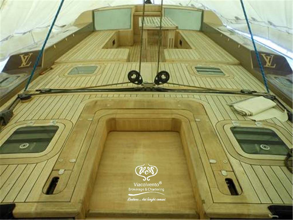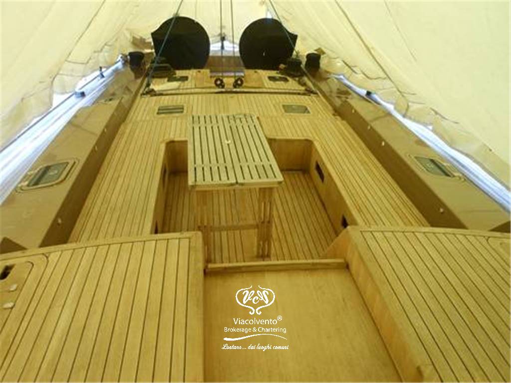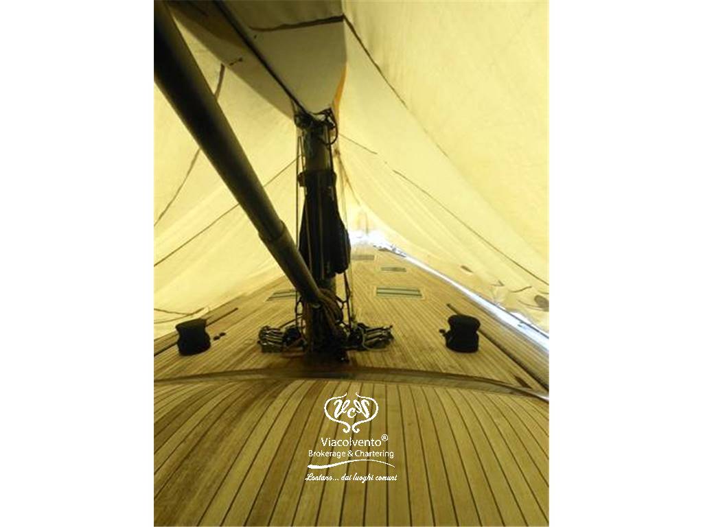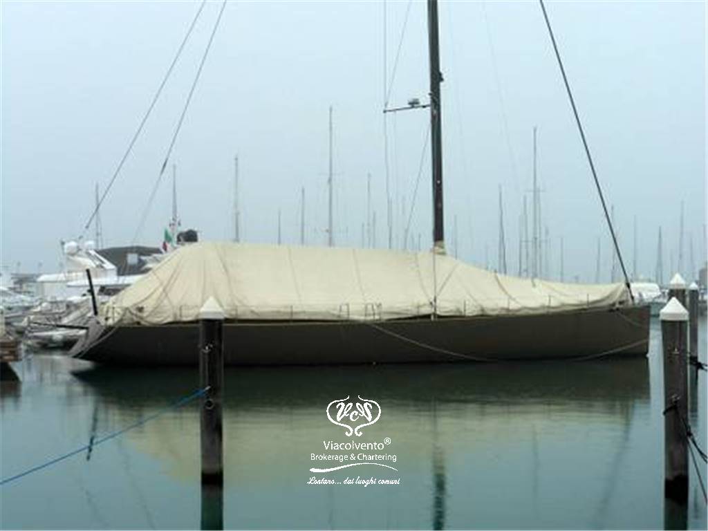 Dotazioni: albero in carbonio V Boom, ponte in teak, carena sandwich vetro-kevlar con rinforzi in carbonio, serbatoio acqua 1000 lt, serbatoio carburante 1500 lt, Motorizzazioni Cummins 260 cv, Generatore 17 kw. Vele: North Sail 3 DL, superficie velica mq 300.