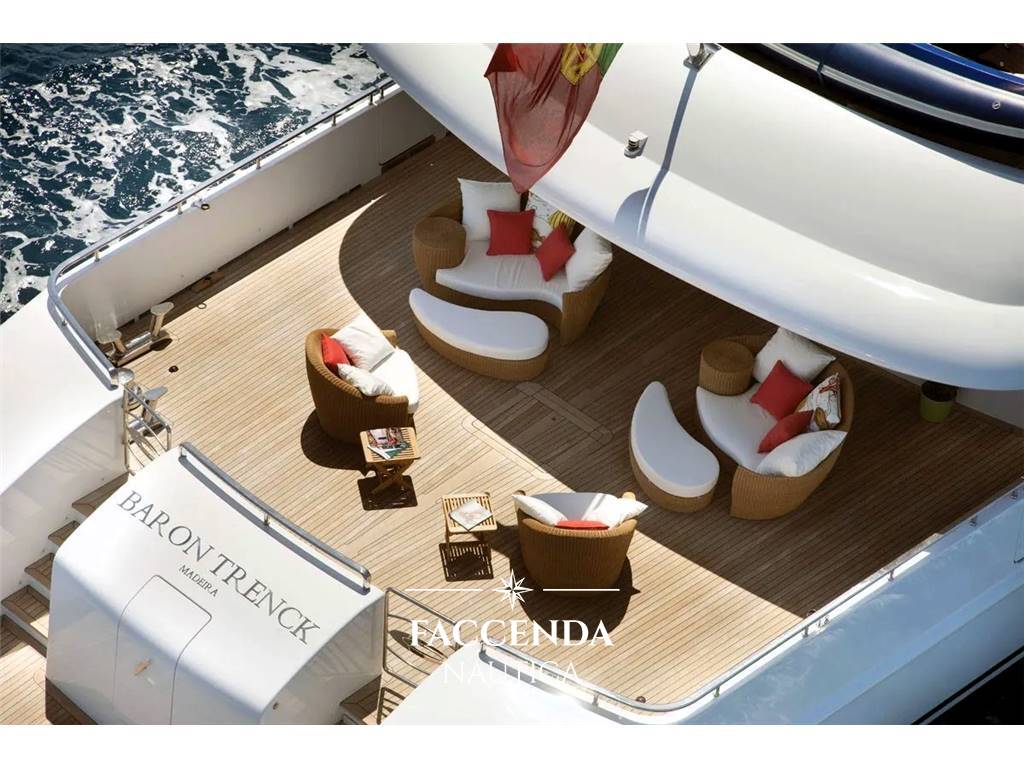 Dopo l’intensivo refit a cui è stato sottoposto il Baron Trenk si può definire come uno yacht praticamente nuovo. Gli interventi hanno riguardato tutti gli organi della barca dalla W6 ai motori alla sostituzione del teak su tutti i ponti alla riverniciatura completa dello scafo e della sovrastruttura. Il BARON TRENCK è stato costruito da Eurocraft con uno scafo rompighiaccio per esplorare il mondo. BARON TRENCK è incredibilmente stabile all'ancora ed è anche dotato di stabilizzatori a velocità zero. Questo yacht da esplorazione è fatto su misura per le avventure in alto mare, dai tropici ai poli, dove tutto quello che dovete fare è rilassarvi e godervi i panorami spettacolari mentre navigate. BARON TRENCK è tra i primi 30% per stazza al mondo. È uno dei 546 yacht a motore nella fascia di dimensioni 40-45 metri e, rispetto agli yacht a motore di dimensioni simili, il suo volume è superiore alla media di 109,46 GT.