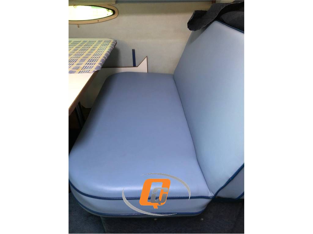 Comfort e Abitabilità: il design include una cabina di poppa e offre ampio spazio e comfort a bordo, spesso dotato di servizi come generatore e aria condizionata. Fornello, Microonde, Forno, Lavello, Frigorifero, Bussola, Ecoscandaglio, Collegamento alla terraferma, Batterie, Caricabatterie, Generatore, fanali di navigazione, Ancora, Salpa ancora di prua, Pompe di sentina, Estintori, Riscaldamento, Aria Condizionata, WC elettrico, Impianto acqua a pressione, Radio, Lettore CD, Lettore MP3, Altoparlanti in cockpit, Plancetta di poppa integrata, Scaletta bagno, Telone completo, Camper completo, GPS.