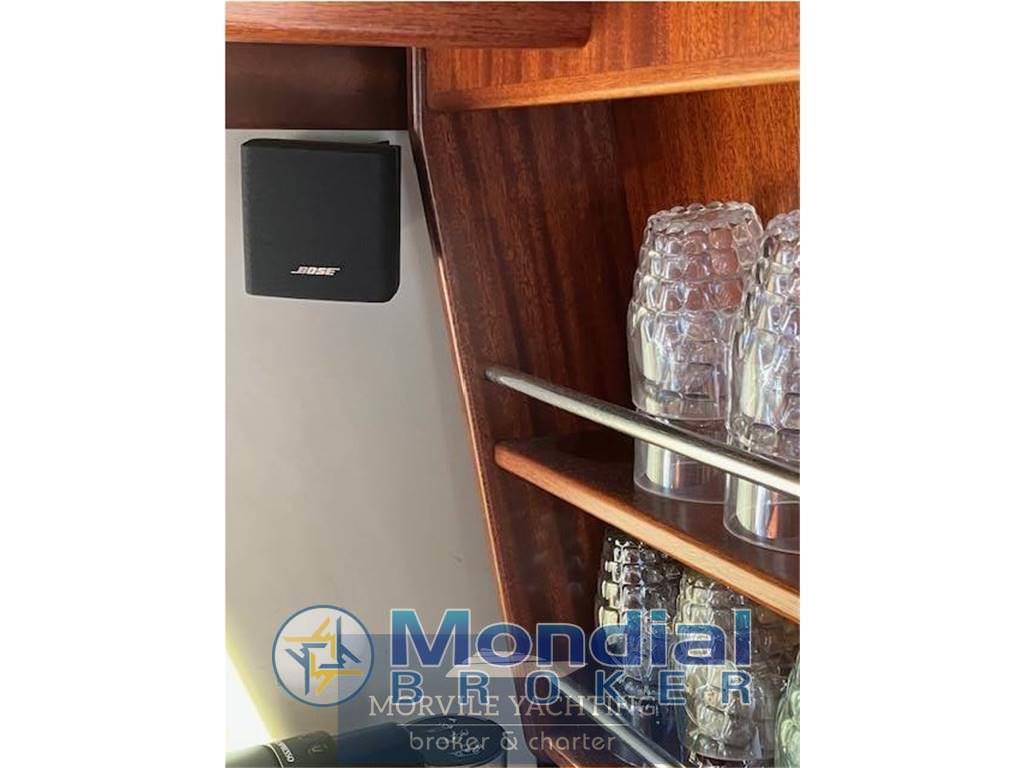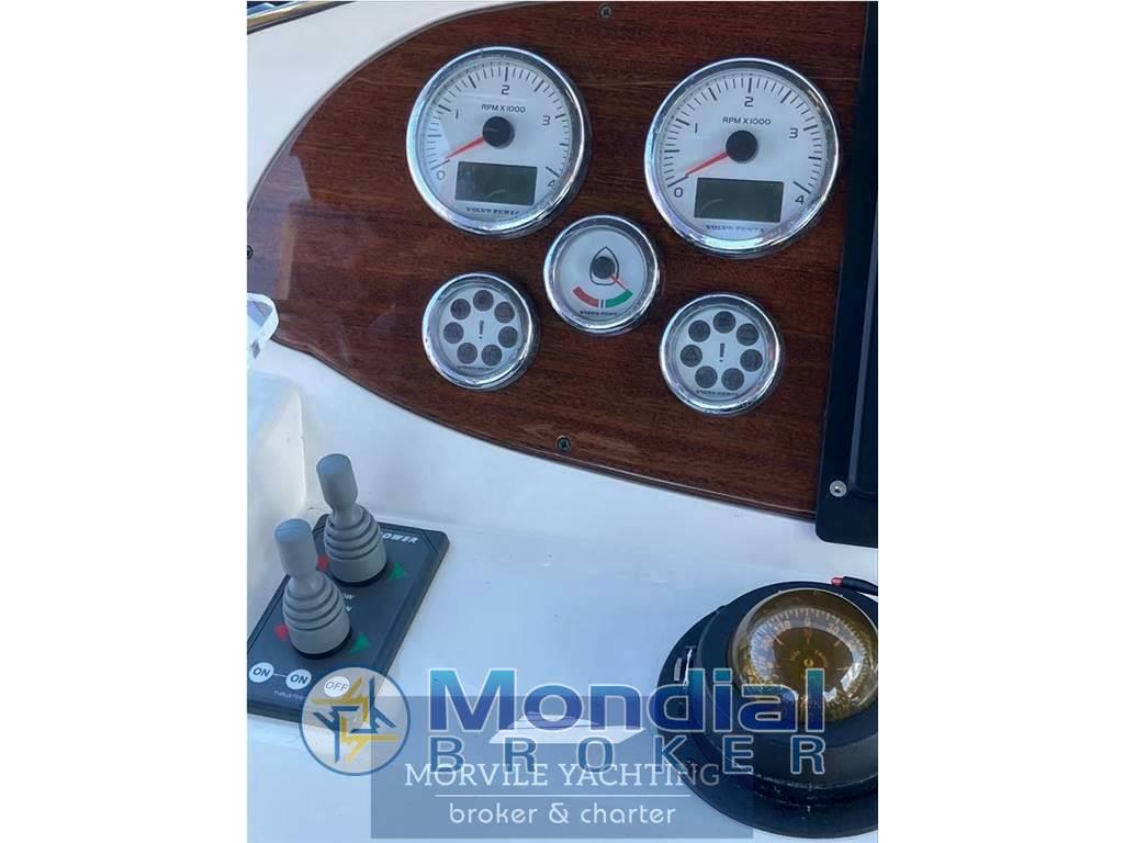 Barca tenuta in modo maniacale, due cabine e due wc con doccia separata, coperture estive e chiusura invernale, strumentazione completa con autopilota e radar oltre epirb, riscaldamento webasto,cucina completa con forno frigo e ghiacciaia, scala x accesso al fly interna ed esterna, uscite laterali da postazione di guida e ospiti,dinette con tavolo abbattibile trasformabile in comodo matrimoniale