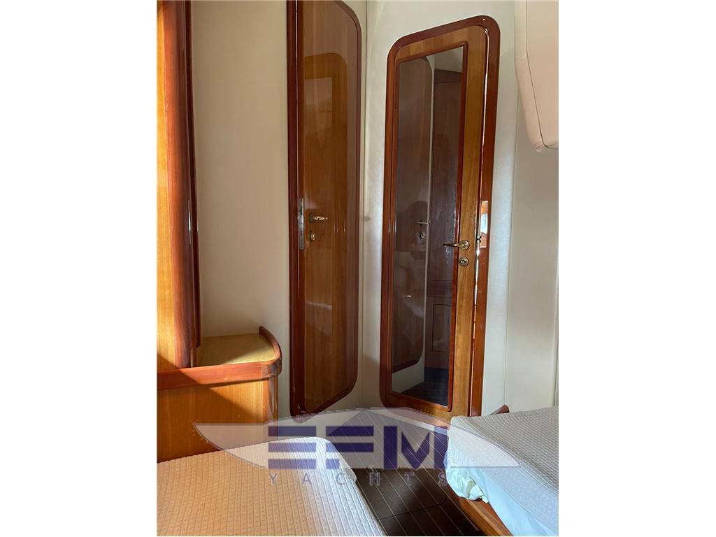 Realizzato su stampo femmina con laminazione manuale e stratificato semplice, lo scafo è particolarmente rigido. Lo ha dimostrato durante i salti fuori dall’acqua fatti a 40 nodi: durante l’atterraggio sull’onda successiva non si sono mai registrate particolari vibrazioni né dello scafo né delle vetrate laterali (non facendo parte della scocca dello scafo sono meno robuste). La coperta è stata invece realizzata con la tecnica del sandwich, un tipo di costruzione che interpone a due stratificati di vetroresina uno di balsa. A differenza del termanto o del pvc, questo prezioso materiale coniuga le doti di leggerezza con quelle della robustezza. Il legno di balsa si apprezza soprattutto in quelle condizioni di carico dove la sollecitazione a compressione è molto elevata. E su uno scafo con queste prestazioni la coperta è un elemento strutturale fondamentale. La preferenza accordata alla resina vinilestere, che possiede proprietà migliori di quella poliestere isoftalica in quanto ha un più forte legame molecolare, rende il manufatto più leggero e più protetto contro i dannosi effetti dell’osmosi. L’utilizzo di tessuti triassiali e unidirezionali, ha permesso inoltre di irrobustire la struttura con stratificati studiati per un determinato carico, senza appesantire troppo l’insieme dell’imbarcazione. Per quanto riguarda gli interni, il cantiere non ha avuto lo stesso riguardo nel salvaguardare il peso. Il grande impiego di compensato marino, nobilitato con ciliegio, radica e teak insieme a superfici laccate, ha sicuramente inciso sul dislocamento, ma d’altra parte l’atmosfera calda e accogliente ottenuta negli interni non si potrebbe mai realizzare sostituendo il legno con il materiale plastico, anche se fatto nel migliore dei modi
