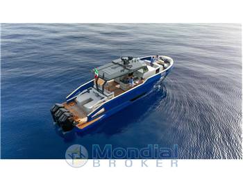 Versione con motori CAT C18 1015hp, garantisce una velocità di massima di 36 nodi e di crociera 25, 3 cabine e 3 servizi, cabina marinaio con servizio