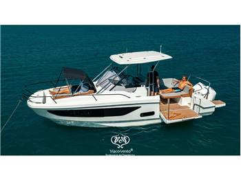 Beneteau Antares 11 Coupé del 2023, motorizzata con due entrobordo Suzuki da 300 hp ciascuno, in condizioni praticamente pari al nuovo. La barca unisc