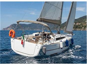 Dufour Yachts 360 del 2021, in eccellenti condizioni, disponibile a visite in Liguria. Versione 2 cabine + 1 Bagno, interni in Rovere. Teak in pozzett