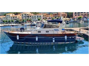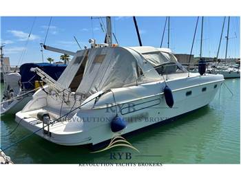 Elegante offshore con grande abitabilità. Motorizzato 2x375 Volvo Penta 8.0 benzina con solo 300 ore di moto. Rimessata in capannone al coperto, usata