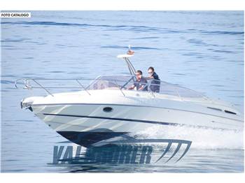 Cantiere italiano, Cranchi CLS 28, motorizzato 2x 225 HP Volvo Penta 4.3 GXI V6 Benzina. Ampio prendisole fisso a poppa, comodo passaggio centrale per